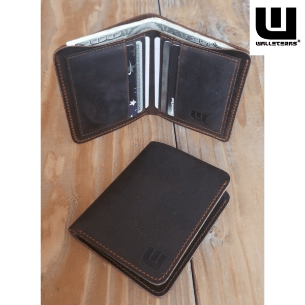 Buy Cowboy Mini Wallet in Crazy Horse Leather At WALLETERAS, visit https://walleteras.com/products/bifold-wallet-vertical-style-in-crazy-horse-leather-dark-brown